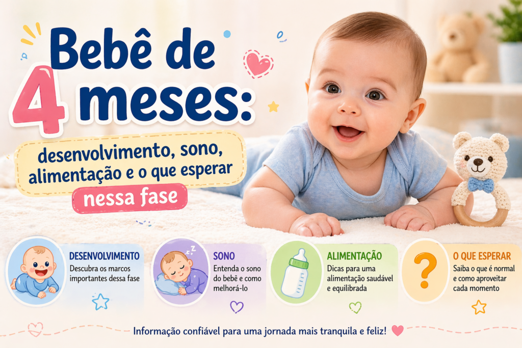 Se você pesquisou sobre bebê de 4 meses desenvolvimento, o que bebê de 4 meses faz, ou rotina de bebê de 4 meses, este artigo completo vai explicar tudo que você precisa saber.