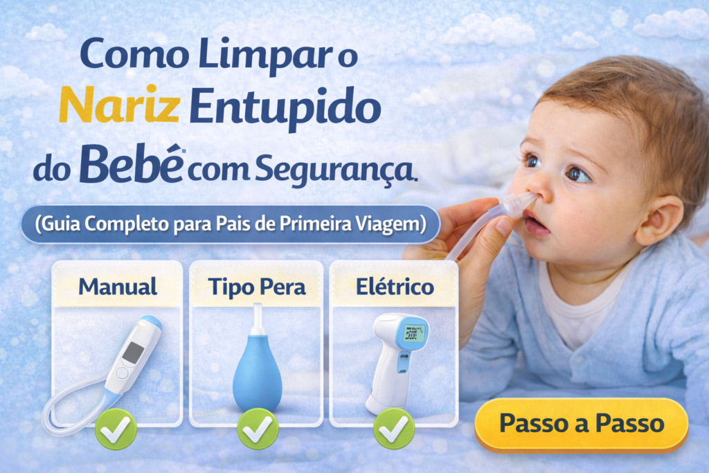 O uso de soro fisiológico e um bom aspirador nasal faz toda a diferença no conforto do pequeno — principalmente antes das mamadas e do sono.