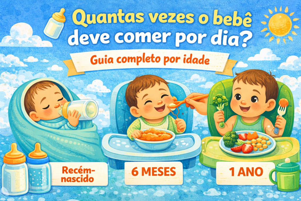 A quantidade de vezes que o bebê deve comer por dia depende da idade e da fase de desenvolvimento. Nos primeiros meses, o bebê se alimenta várias vezes ao dia, principalmente com leite. Após os 6 meses, as refeições começam a aumentar com a introdução alimentar.